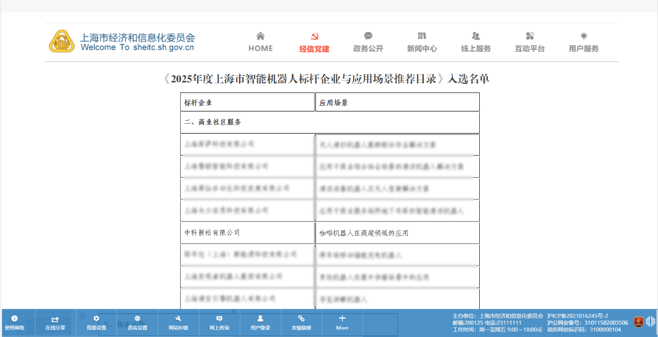 近日,上海市经济和信息化委员会发布了《2025年度上海市智能机器人标杆企业与应用场景推荐目录》(以下简称《目录》)的企业名单,中科新松凭借“咖啡机器人在商超领域的应用”入选”商业社区服务“领域的标杆企业!